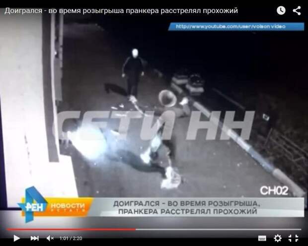 Доигрались - нижегородского пранкера во время очередного розыгрыша расстрелял прохожий. Владимир Цапаев вместе со свой помощницей увлекаются тем, что создают на улице различные ситуации и скрытой камерой снимают реакцию прохожих и выкладывают все это на свой канал в YouTube. То нарядятся в костюм хим.