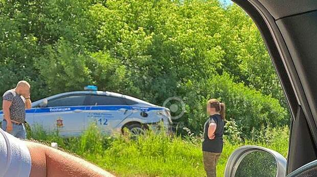После аварии с участием иномарки машина ДПС оказалась в кювете.