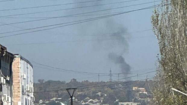 В Сети также опубликовали фотографии, на которых над городом виден дым.