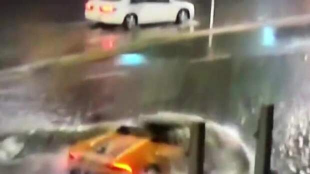 На видео суперкар преодолевает пробку, после чего разгоняется, и его полностью накрывает волной.
