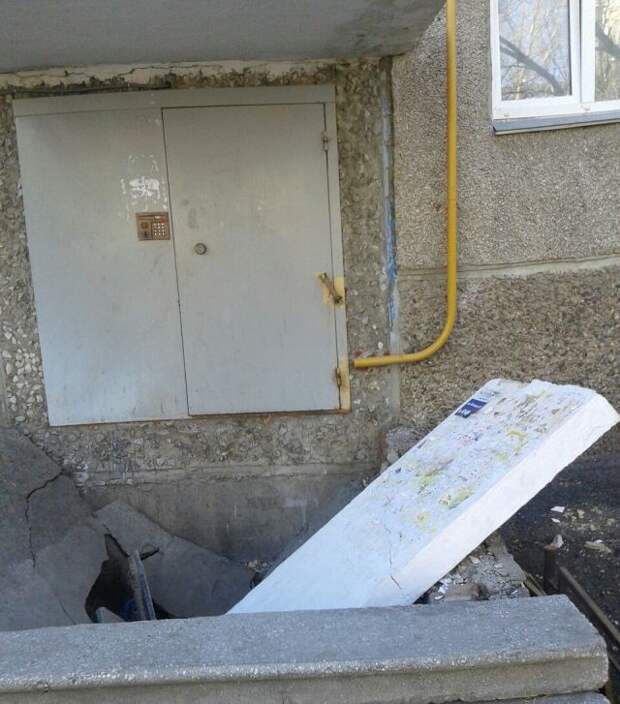 В Челябинске крыльцо жилого дома провалилось под ногами семьи с ребенком. Инцидент произошел на улице Овчинникова.
