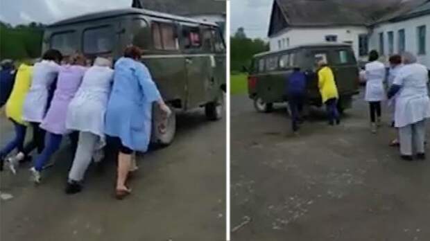В Амурской области у медиков совсем другие проблемы: работницы районной больницы сняли на видео, как они каждое утро заводят свой служебный автомобиль. Женщины в белых халатах с озабоченным видом направляются к детищу отечественного автопрома.