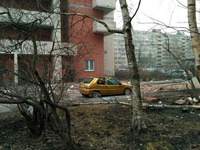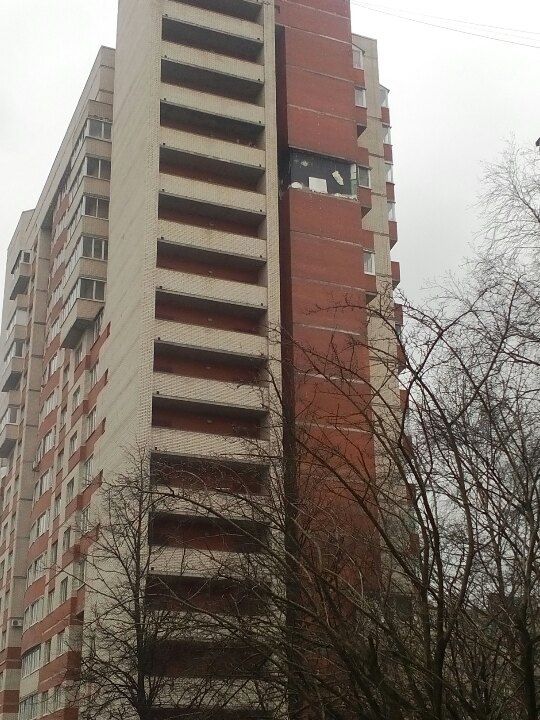 Очевидцы сообщили о падении части стены жилого дома в Санкт-Петербурге. Инцидент произошел на проспекте Солидарности города.