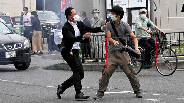 Позже телеканал NHK опубликовал кадры, на которых виден момент выстрела злоумышленника в японского экс-премьера.