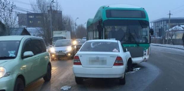 В Хабаровске при столкновении пассажирского автобуса и легковушки пострадал один человек.