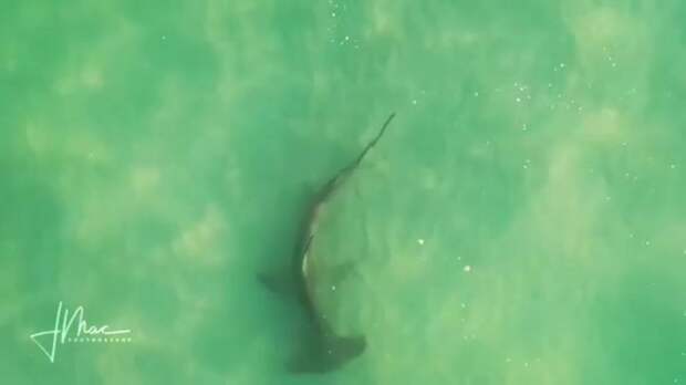 Несмотря на то что пловец случайно попал акуле по голове, та "простила обиду", не стала атаковать мужчину и спокойно уплыла восвояси.