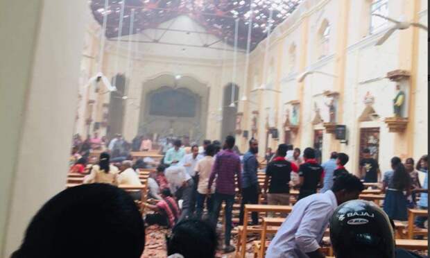 В Сети появилось фото с места взрыва в церкви в Шри-Ланке. На нем видны разрушения, также можно заметить пострадавших людей.