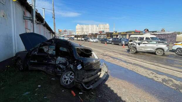 ДТП произошло на улице Логвиненко. Водитель автомобиля марки "Омода" выехал на перекресток на красный сигнал светофора и врезался в "Фольксваген".