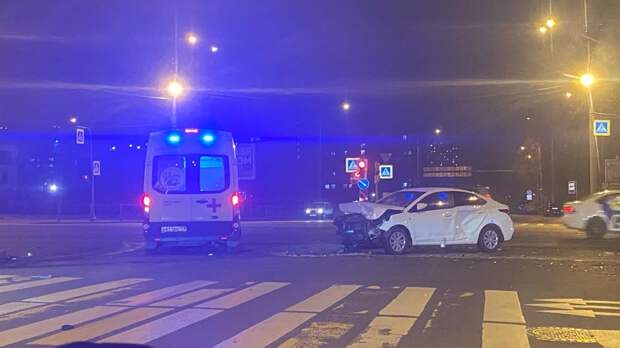 Автомобиль Hyundae Solaris столкнулся с Daewoo Nexia на перекрестке в Санкт-Петербурге, сообщает "ДТП и ЧП".