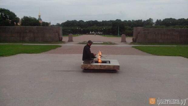 Компания товарищей пожарили шашлыки на Вечном огне Марсова поля в Санкт-Петербурге.