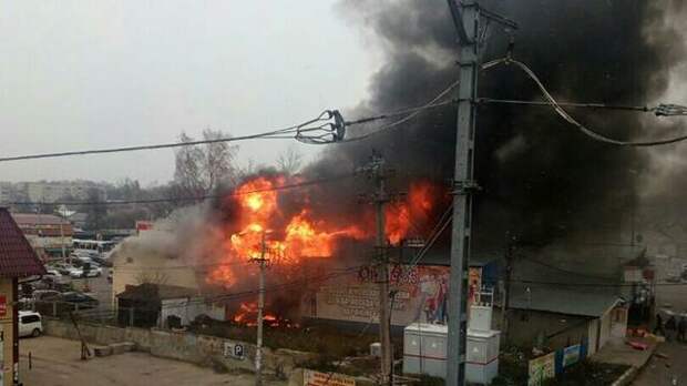 Появилось видео вспыхнувших торговых рядов в Петушках Владимирской области.