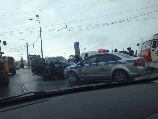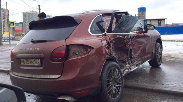 По сообщениям очевидцев, на перекрестке улиц Жукова и Казакова в Петербурге столкнулись BMW X5 и Porsche Cayenne.