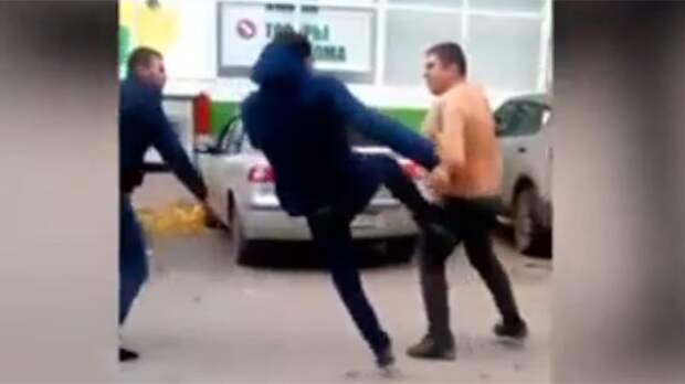Схватка прямо на проезжей части — одного из оппонентов ударом отправляют под колеса авто! Драчунов, кажется, не смущает такое количество зрителей. В какой-то момент бой, наконец, прекращается, ну а что стало причиной потасовки, остается только гадать.
