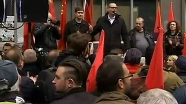 Инцидент произошел в городе Льеж во время первомайского шествия на глазах десятков журналистов, перед которыми выступал Хедебау.