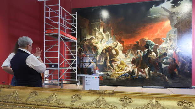 Над изображением гибели древнеримского города от извержения вулкана Везувия Карл Брюллов трудился шесть лет. Реставрация пройдет, конечно, быстрее – завершить ее планируют в октябре. Затем шедевр займет центральное место на выставке к 225-летию со дня рождения мастера в Михайловском замке.