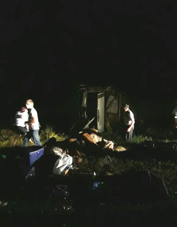 Появились фото с места страшной аварии в Ставропольском крае. Напомним, там столкнулись пассажирский автобус и легковушка. По предварительным данным, 2 человека погибли и еще 15 пострадали.