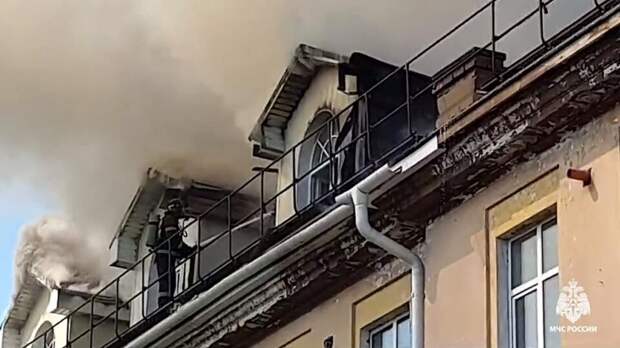 По данным ведомства, загорелась кровля здания. Площадь пожара составляет 200 квадратных метров.
