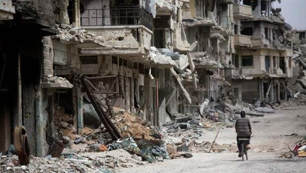 На улицах жители города выкрикивают лозунги в поддержку сирийской армии.
