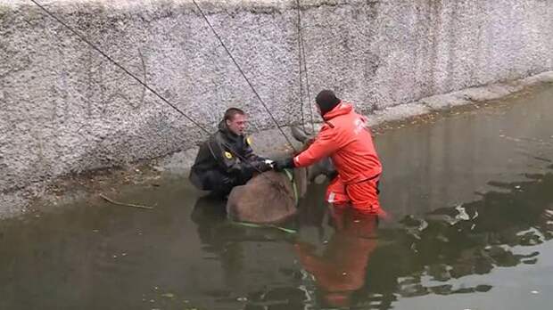 Ранее сообщалось, что спасатели начали проводить операцию по поднятию из воды тонущего в реке лося.