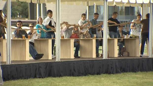 В оргкомитете московского застолья заявили, что размер стола сопоставим с колесом обозрения, которое установлено на ВДНХ.