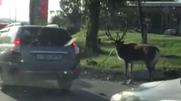 В Сети появилось видео того, как привязанный олень бежал за автомобилем на улице Нижнего Тагила в Свердловской области.