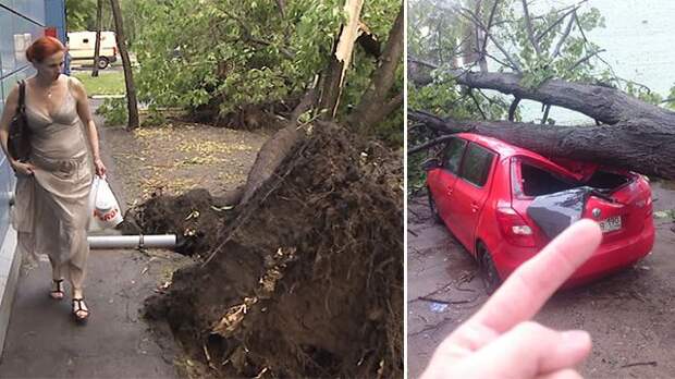 Сильнейший ветер, град и ливень обрушились вечером понедельника на столицу. В результате разгула стихии были остановлены пять маршрутов трамваев, а также с корнем выдраны десятки деревьев. Причем огромные деревья падали прямо на припаркованные автомобили.