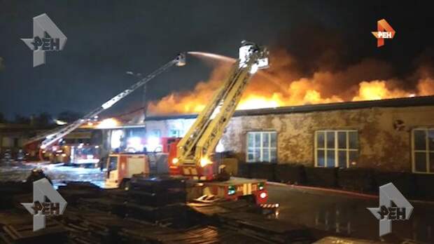 В МЧС сообщили, что пламя удалось локализовать. Пожар взят в кольцо, продолжается тушение огня. Работу огнеборцев осложняют горючие материалы, которые хранились на складе.