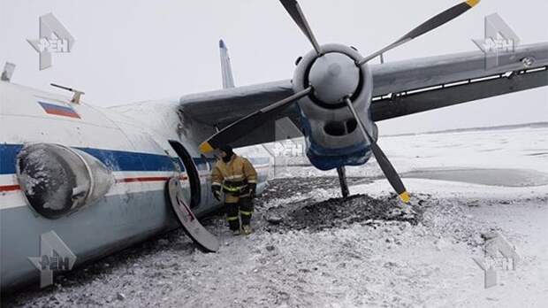В результате аварийного приземления у самолета оказались повреждены шасси.