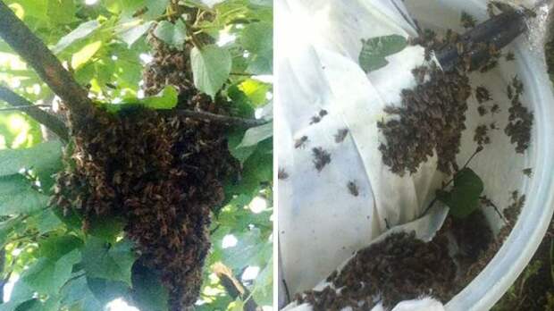 Четырехкилограммовый рой пчел обнаружили на высоте около шести метров над землей.