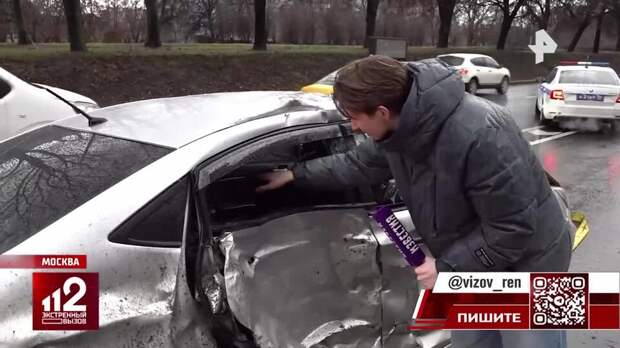 "Судя по повреждениям можно сделать вывод, что основной удар пришелся в эту часть автомобиля, после чего он, вероятнее всего, перевернулся и проскользил еще несколько метров на крыше – это можно заметить еще по характерным следам стертой краски. Дверь вмяло в салон, кресло сложило, лобовое окно выбито. Судя по всему, машина была наглухо тонирована", – сообщил корреспондент Павел Пономарев с места происшествия.