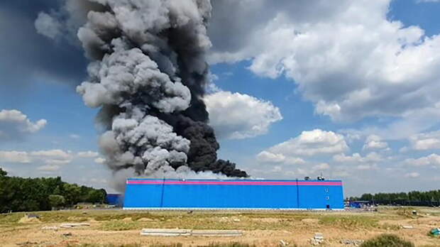 Пожар охватил 35 тысяч "квадратов" склада OZON. В какой-то момент у помещения обрушилась кровля.