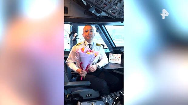Юсупов записал видеооткрытку, на которой дарит букет всем представительницам прекрасного пола, в кабине пилотов.
