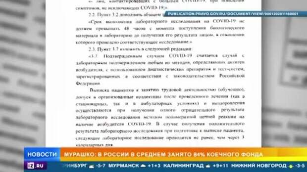 Глава Роспотребназдора дополняет: чтобы "койки долечивания" быстрее освобождались, внесены важные изменения в нормативные документы. Теперь, чтобы выписать пациента, вылечившегося от COVID-19 не только из больницы, но и с домашнего больничного, достаточно всего одного отрицательного ПЦР-теста. Ещё одна серьёзная новация: все лаборатории теперь должны обрабатывать тесты на коронавирус за 48 часов.