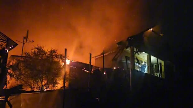Сильный пожар охватил три частных дома в поселке городского типа Дагомыс в Сочи. Об этом 19 октября сообщили в МЧС России по Краснодарскому краю.