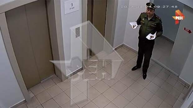 Инцидент запечатлен на видео: на кадрах видно, как мужчина в военной форме (судя по количеству звезд на погонах, находится в звании майора) измазал стены фекалиями и приклеил несколько обращений к сотрудникам.
