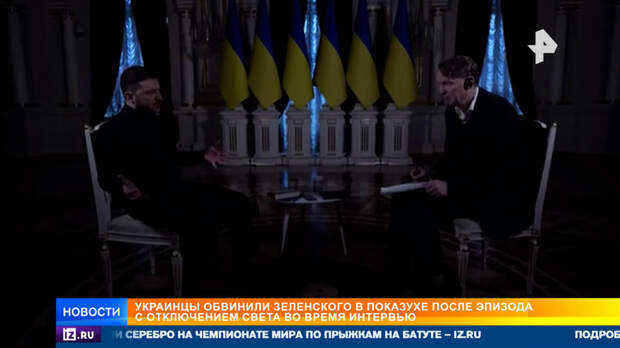 Украинцы обвинили главу киевского режима Владимира Зеленского в организации неуместного шоу. Газета The Guardian выложила фрагмент интервью с ним, в ходе которого в зале на некоторое время гаснет свет.