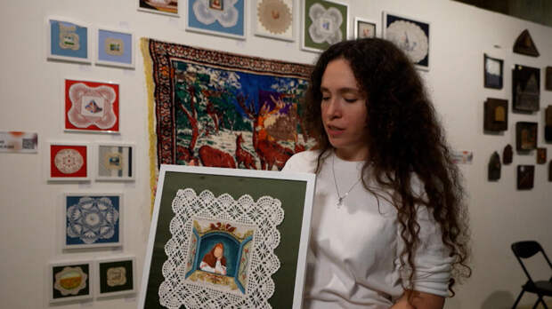 "Это живопись по винтажному текстилю. В данном случае это персонаж, всем нам знакомый, бабушка, которая в конце фильмов говорила: "Вот в сказке конец, а кто слушал – молодец", – говорит о своей картине художник Виктория Шмыговская.