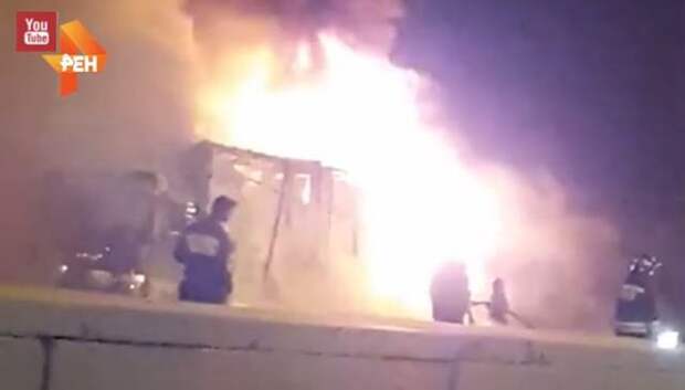 На месте работают пожарные расчеты. В ГИБДД отметили, что в результате инцидента никто не пострадал.