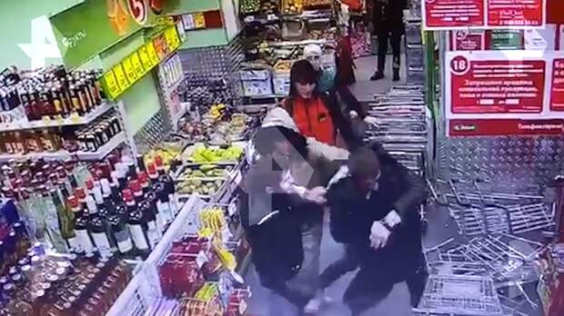 Трое мужчин избили до потери сознания охранника "Пятерочки", который заподозрил их в краже. Конфликт попал на камеры видеонаблюдения.