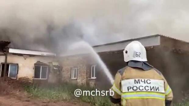 В Башкирии огнеборцы продолжают тушить пожар на кирпичном заводе в городе Давлеканово в Башкирии.