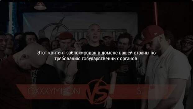 Ролик с Versus‑баттлом реп-исполнителей Oxxxymiron и ST, который 14 декабря был включен Google в список популярных запросов на территории России в 2016 году, было заблокировано по требованию государственных органов РФ.