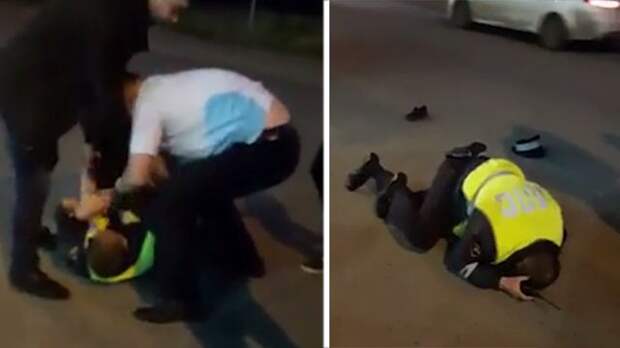 В интернете появилось видео драки неизвестных с сотрудником полиции в Казани. Записи в соцсетях гласят, что в одном из районов города несколько молодых людей чуть до смерти не забили представителя ГИБДД.