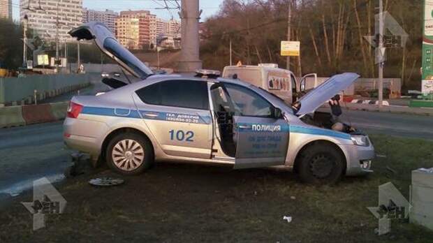 Ранее очевидцы сообщали, что в ДТП, произошедшем на северо-западе Москвы, пострадали три автомобиля, в том числе служебный автомобиль ДПС, врезавшийся в столб.