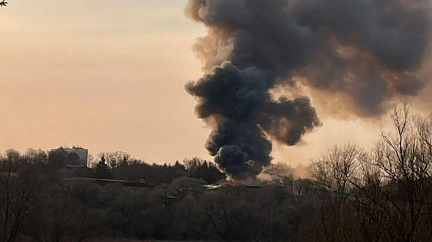 Склад горит на территории бумажной фабрики в подмосковном Серпухове.