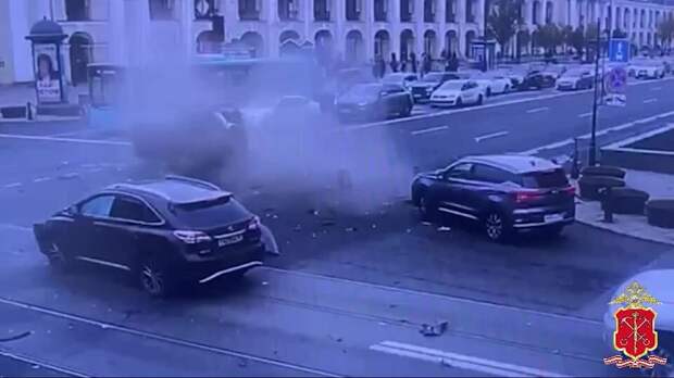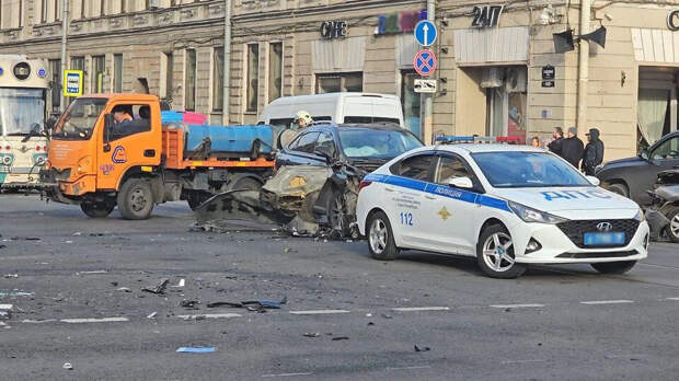Авария произошла на перекрестке Невского проспекта и Садовой улицы днем 22 октября. Столкновение зафиксировала камера наблюдения.