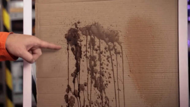 "Итак, давайте смоделируем это химическое оружие. В брюшке у жука располагается полость, разделенная на две части. В одной части находится перекись водорода, а в другой – окислитель гидрохинин. Заряжаем наше химическое оружие. Когда жук пугается, эти две жидкости смешиваются – перекись и гидрохинин. В результате образуется очень агрессивная смесь с температурой около 100 градусов. Плюс ко всему жук в состоянии выбросить ее из своего брюшка со скоростью 10 метров в секунду. Смотрите, что происходит с картоном, с органикой. Прямо на глазах чернеет. Органика горит. Любому обидчику, который окажется в зоне поражения этого безобидного на вид насекомого, ну, прямо очень плохо будет", – заключил ведущий Александр Иванченко.