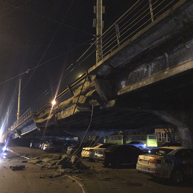На Шулявском путепроводе в Киеве вечером 27 февраля обрушился мост. Об этом сообщают местные СМИ.