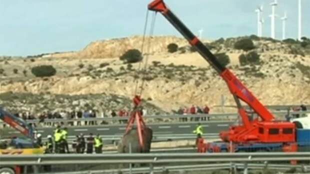 Цирковые слоны заблокировали крупную магистраль на юго-востоке Испании. Грузовик, перевозивший животных, врезался в отбойник и перевернулся.