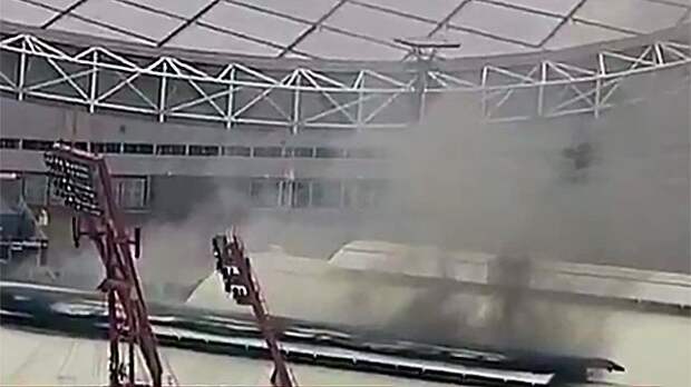 Как видно на записи с места ЧП, над олимпийским объектом вздымаются клубы дыма.