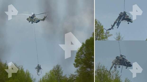 Упавший Ми-8 был эвакуирован на внешней подвеске другим вертолетом - Ми-26. На месте крушения были обнаружены бортовые самописцы.